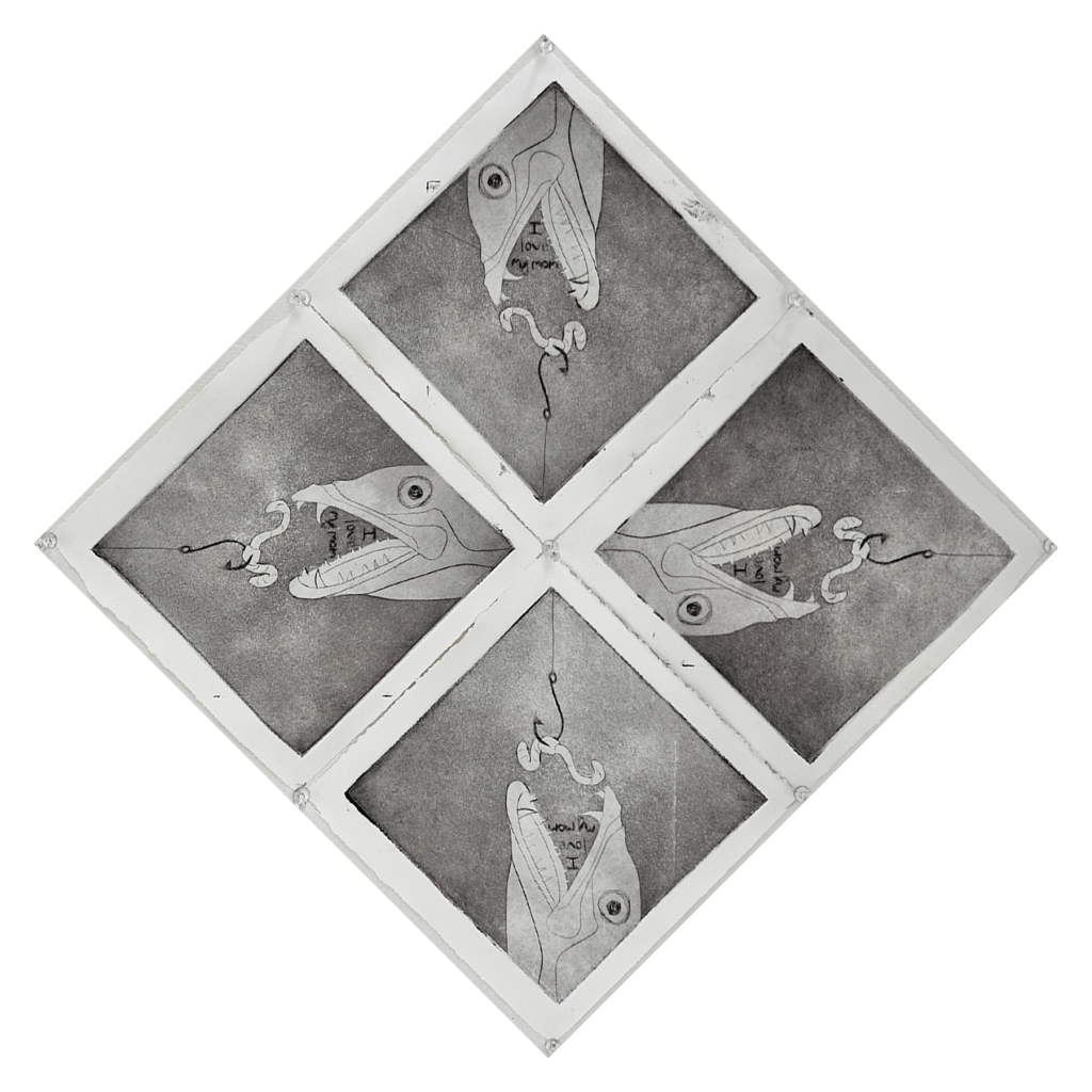 Gouache, digital collage, Polaroid I-type film, and artist’s tape