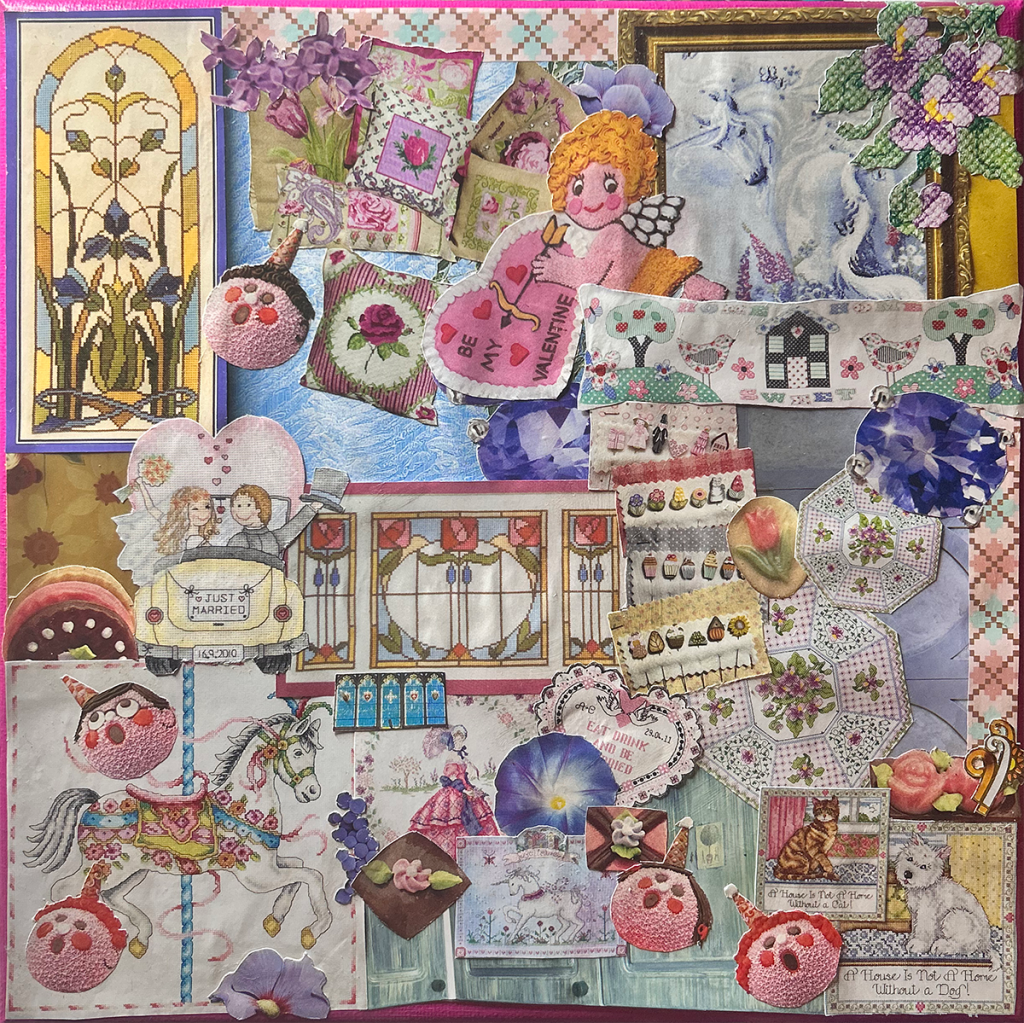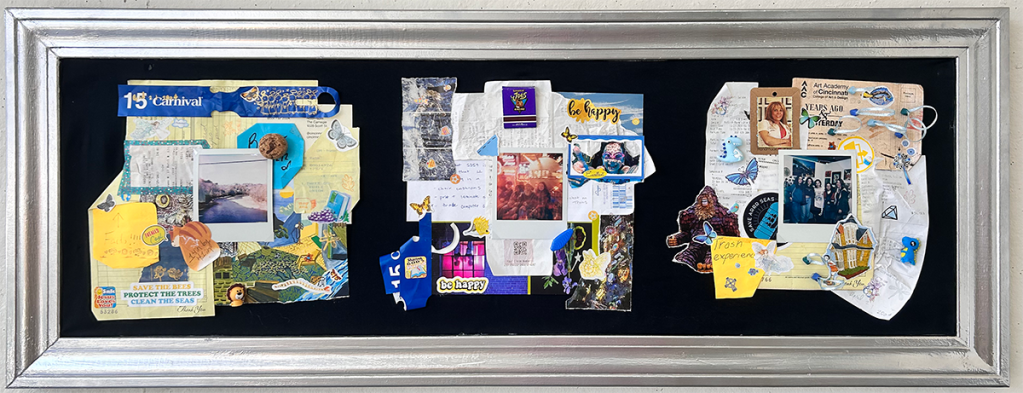 Wood trim, cotton fabric, and collected personal material