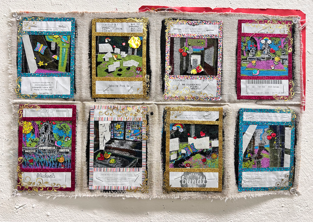 Receipt paper, construction paper, washi tape, stickers, acrylic marker, pen, and found card cover